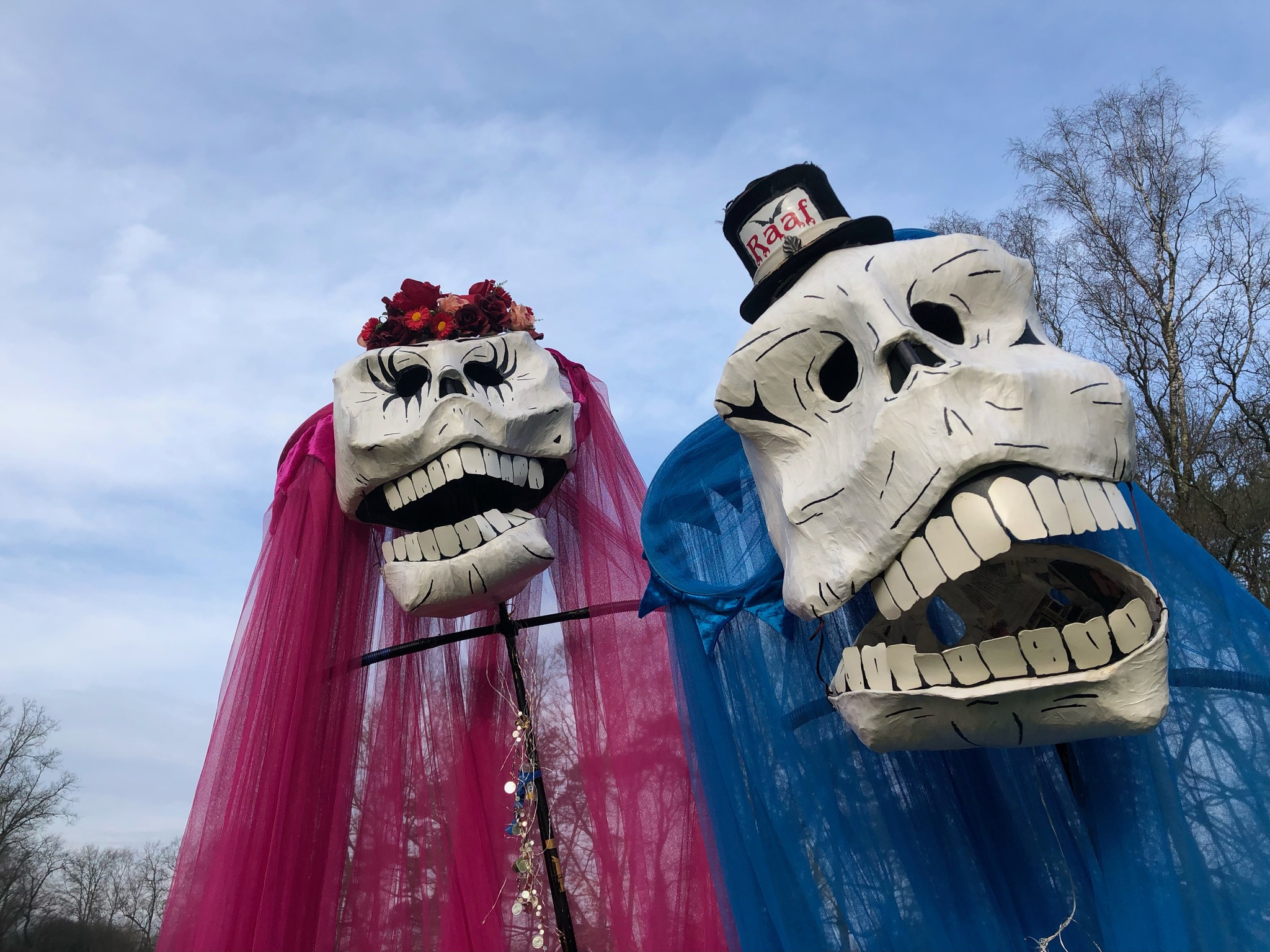 The Marriage on Stilts with the groom in Halloween-schmink and the bride with lights, amazing for the family!