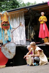Rabe zum Ursprung ist die Reise zum Anfang von allem. Eine Geburtsgeschichte aus alter Tradition. Mobiles Kindertheater in die Schöpfungsgeschichte mit Papa und Mama Zulu.
