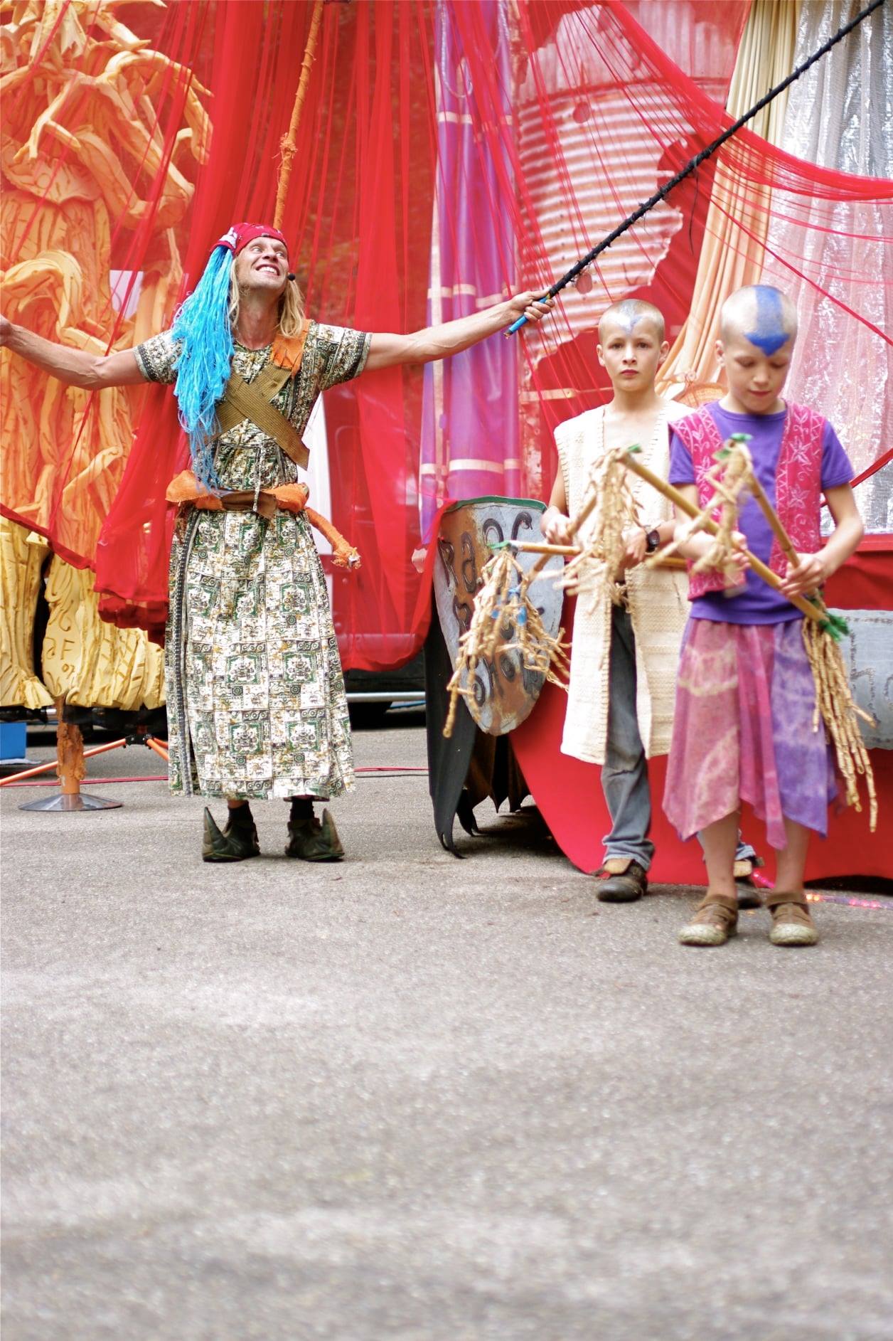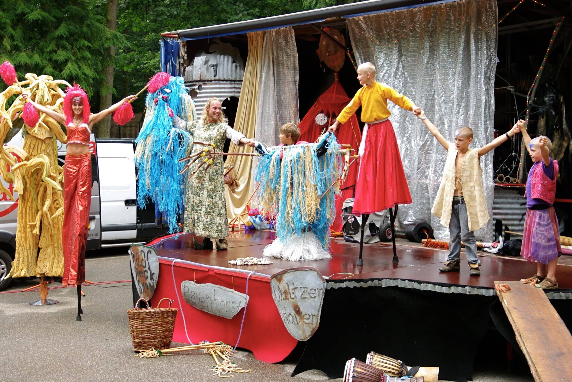 Deze voorstelling over het ontstaan van de wereld is een fantastische geheel. De acts Water, Papa en Mama Zulu, Aboriginal, en de Avatars van Vuur en Lucht komen samen in dit prachtige kindertheater. Deze kindervoorstelling wordt op stelten gespeeld en is geschikt voor straattheaterfestival of schoolplein. De voorstelling anno 2024 kan door 3 tot 5 personen worden opgevoerd.